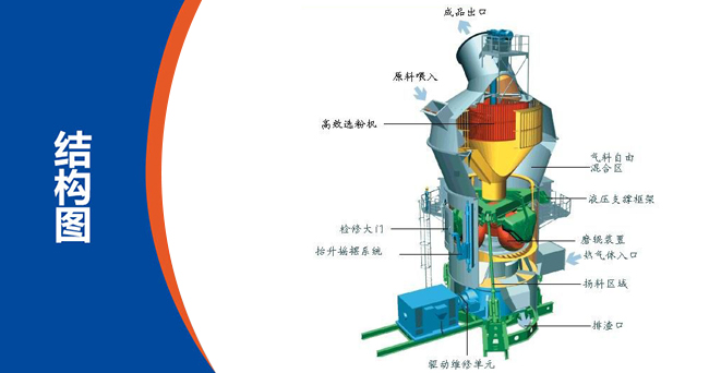 電動機驅(qū)動減速機帶動立式磨機磨盤轉(zhuǎn)動,將粉磨的石墨碎料由鎖風喂料設備送入旋轉(zhuǎn)的磨盤中心,在離心力作用下,石墨碎塊向磨盤周邊移動,進入粉磨輥道。在立磨磨輥壓力的作用下,石墨碎塊受到擠壓、研磨和剪切作用而被粉碎。同時,熱風從圍繞磨盤的風環(huán)高速均勻向上噴出,粉磨后的超細石墨粉被風環(huán)處的高速氣流吹起,一方面把粒度較粗的石墨粉吹回磨盤重新粉磨,另一方面對懸浮超細石墨粉進行烘干,細粉則由熱風帶入分離器進行分級,合格的超細石墨粉細粉隨同氣流出磨,由收塵設備收集下來,即為產(chǎn)品,不合格的石墨粗粉在分離器葉片作用下重新落至磨盤,與新喂入的物料一起重新磨,如此循環(huán),完成粉磨作業(yè)全過程。